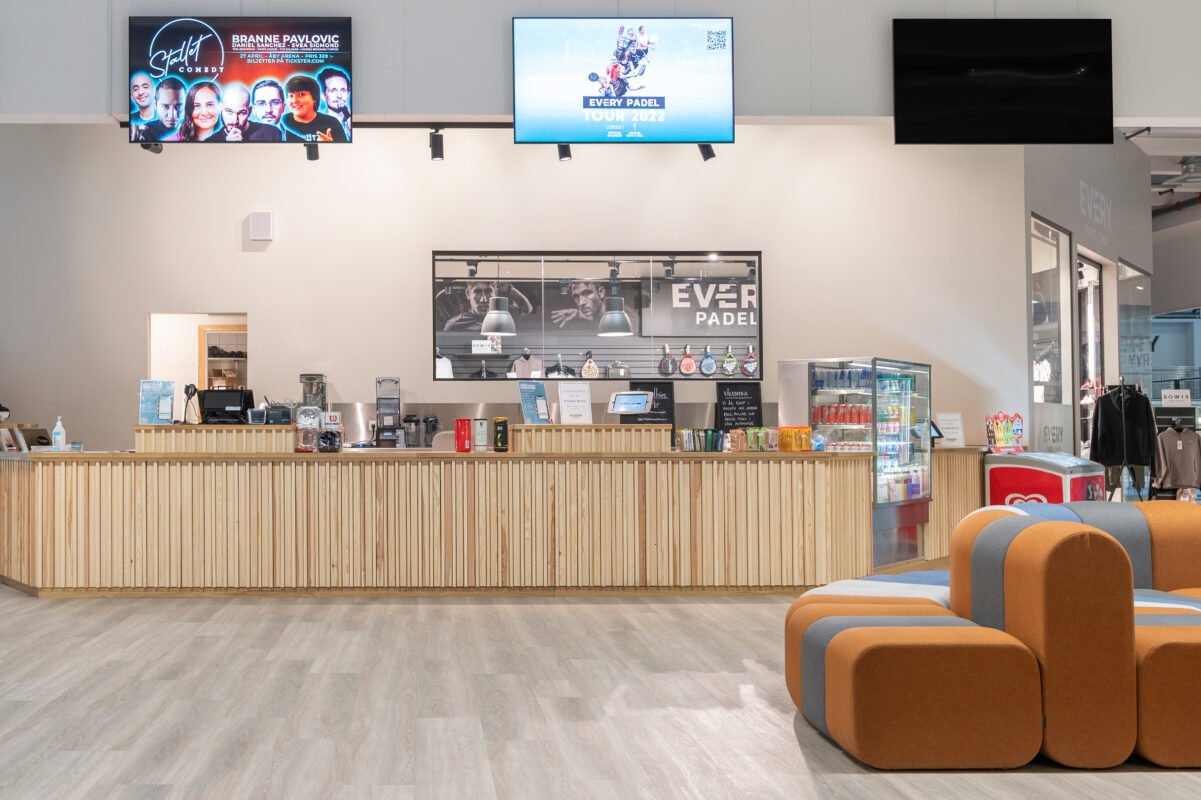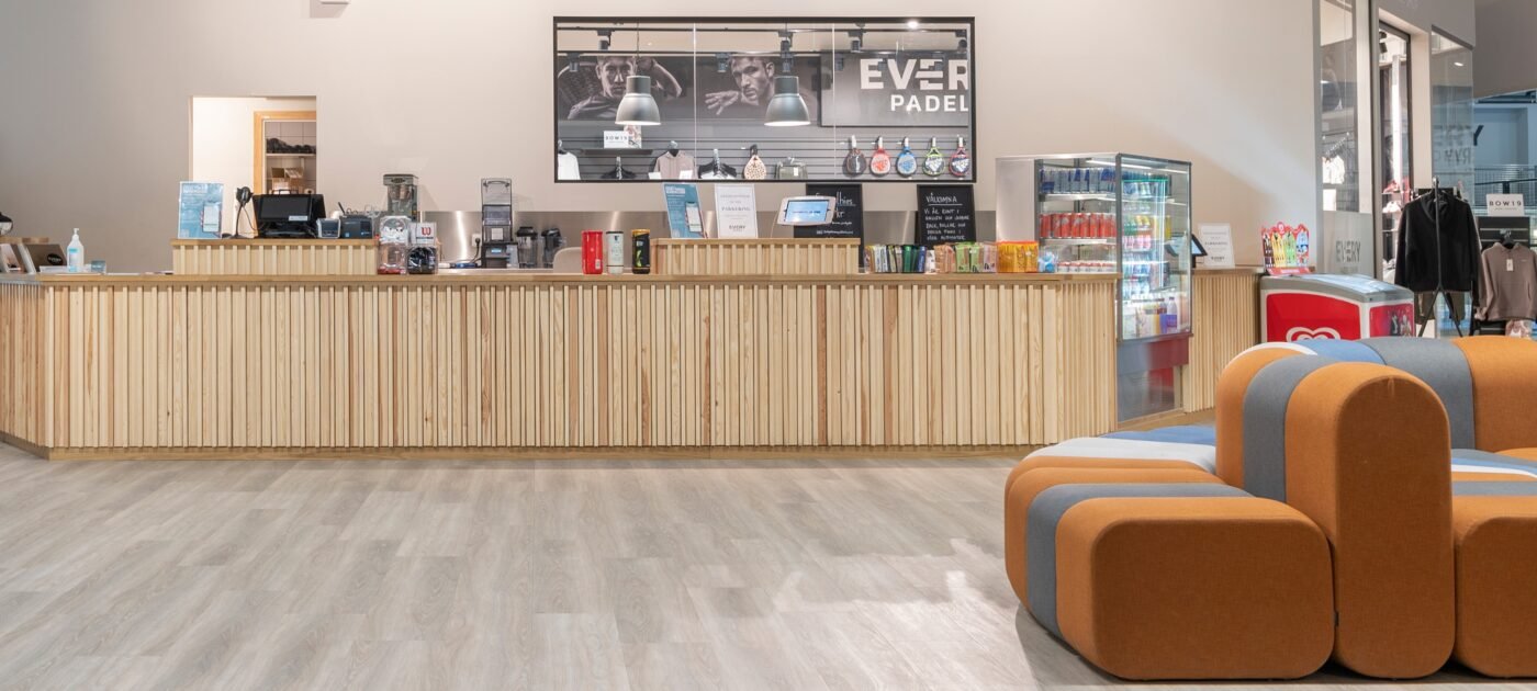 Every Padel Åby is one of Sweden’s largest Padel Clubs with 26 padel courts located just outside Gothenburg. They were looking for a well-designed product in combination with great durability, due to the high traffic in the club from players and audience in combination with the sand from the courts. With a combination of Luxury Tiles and textile could they meet the needs from different areas in the arena