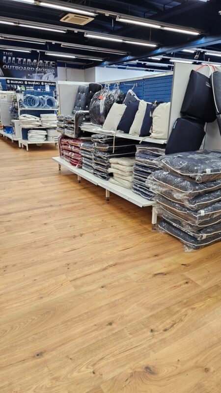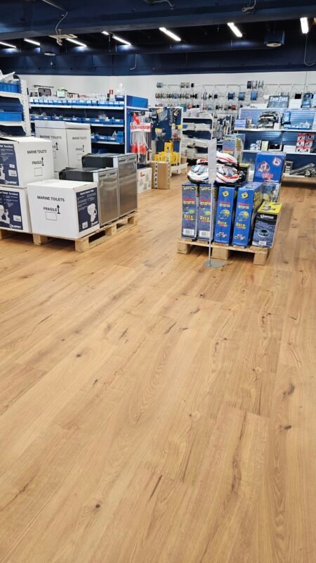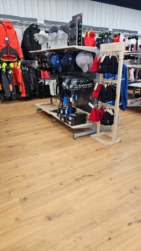 Marinekauppa are very pleased with the flooring – it’s durable and beautiful and they like the color and see that it is a perfect background for their product range and creates a warm wood floor atmosphere for their marine style store.