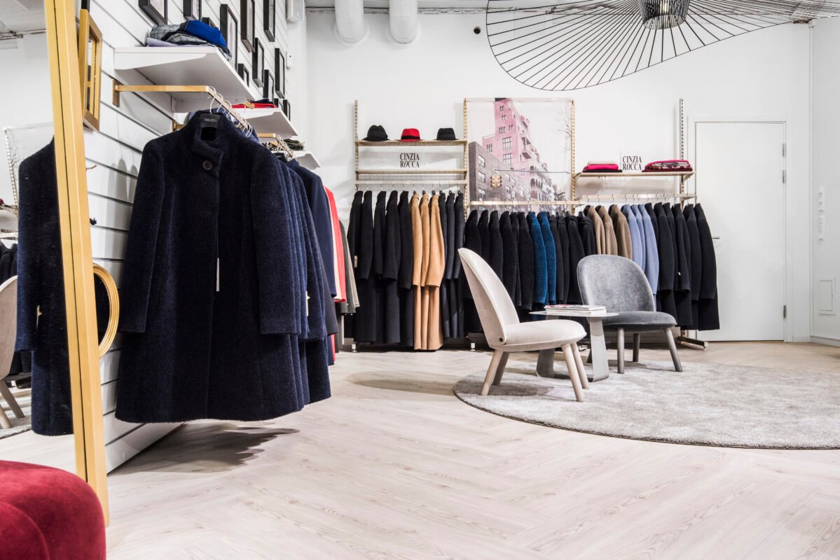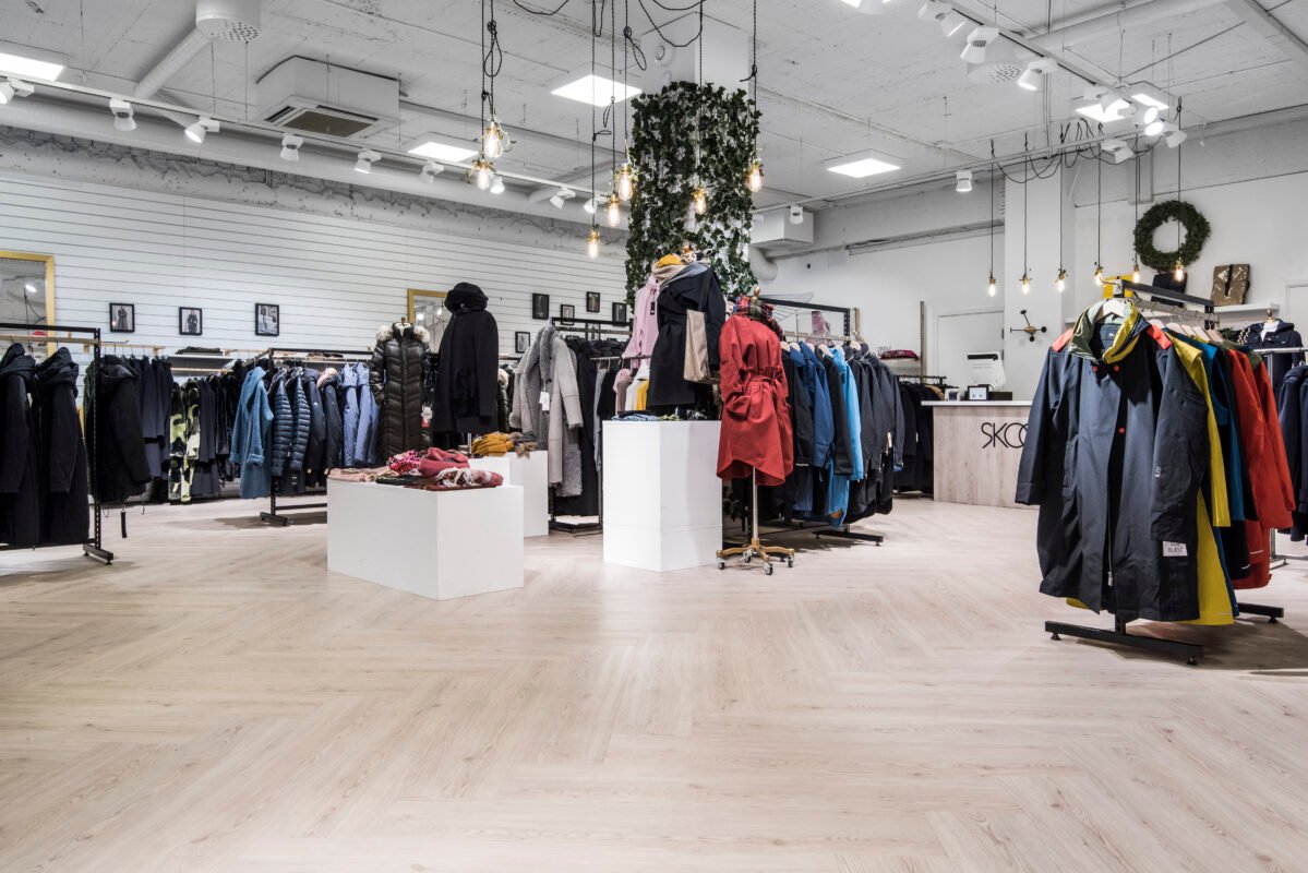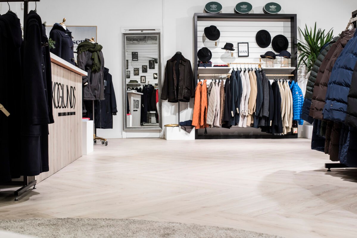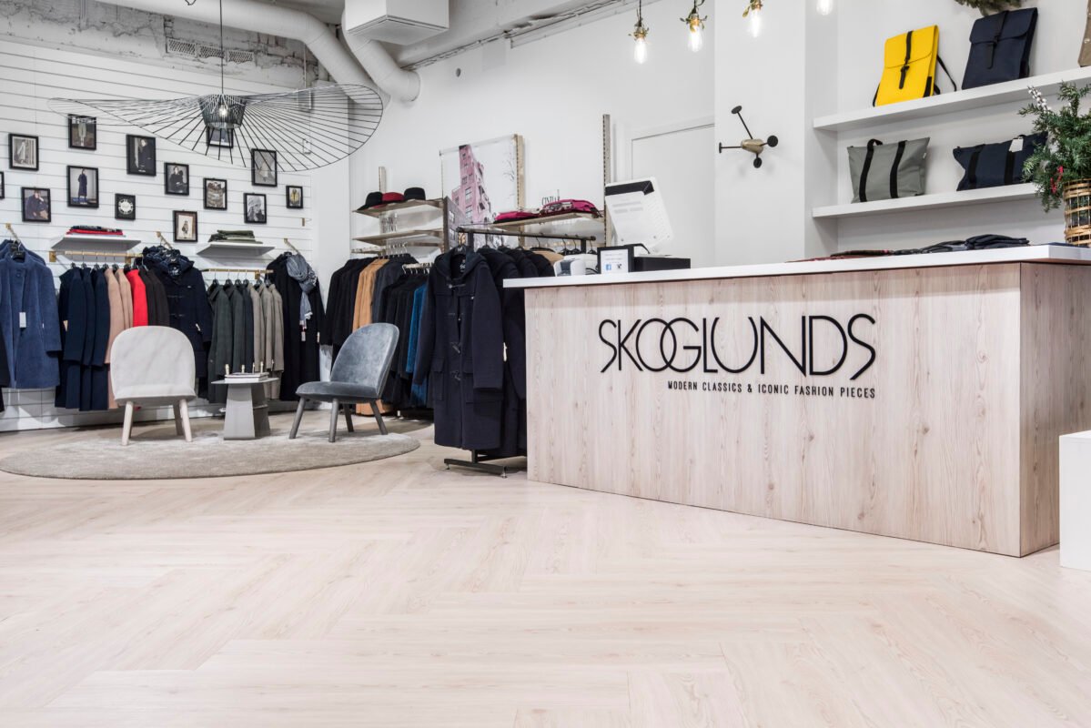 For their store renovation in Malmö, Sweden, Skoglunds clothing shop selected our popular Kährs Luxury Tiles Dry Back Triglav and chose to install the flooring in a herringbone pattern. The Dry Back construction