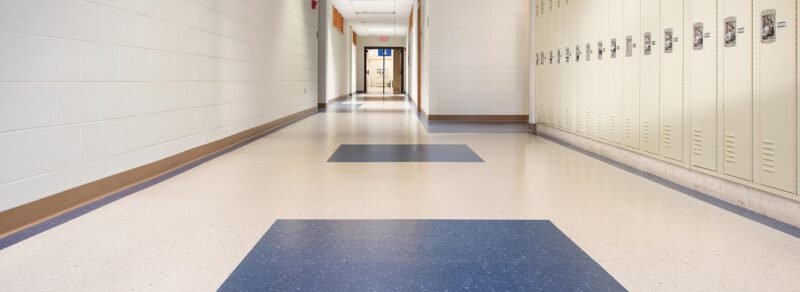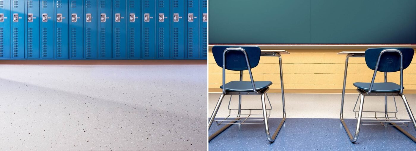 Upofloor Quartz Tile was selected to be installed throughout the facility for its extreme durability, supporting over 3,500 psi. With a variety of colours and detailed patterns, the tile is visually appealing as well as resistent to heavy traffic and scuff marks. Because of its ease and low maintenance, the flooring was a cost-effective choice for the high school.