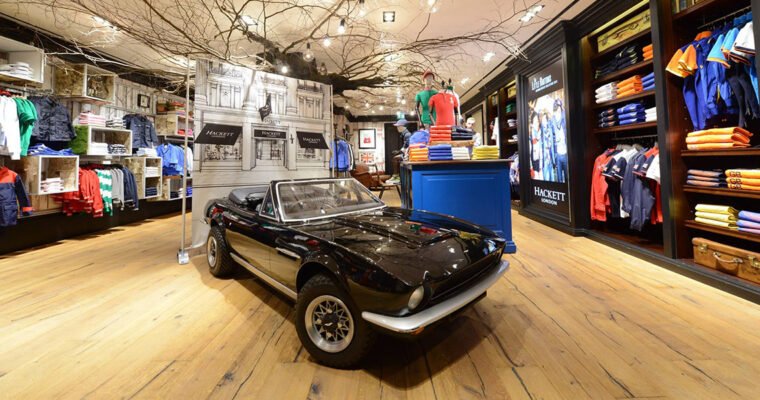 The new flagship store occupies the former Ferrari merchandise outlet and spans three-storeys. The high quality refurbishment follows an earlier refit at Hackett’s Boulevard des Capucines store in Paris, where Kährs was also specified.
