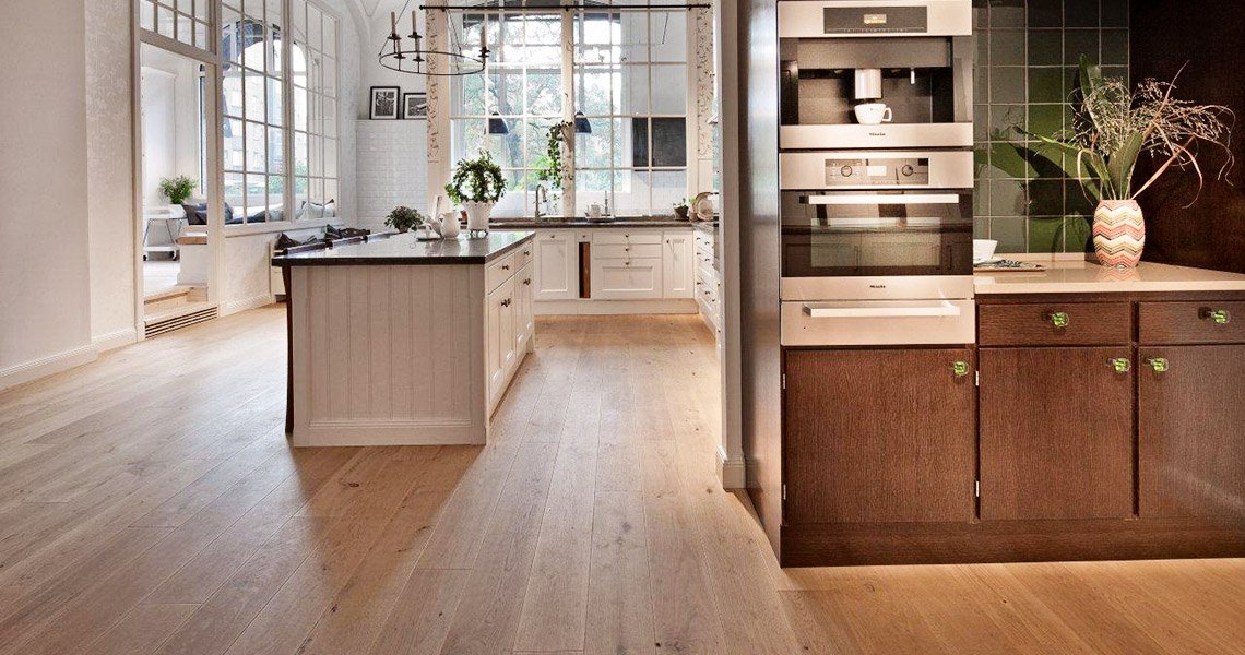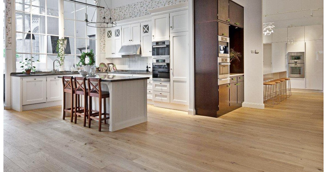 The Kvänum in Malmö is one of Kvänum’s biggest showrooms. They operate across the whole of southern Skåne, from Landskrona to Smygehamn and from Falsterbonäset to Österlen. Kährs’ Oak Jersey, a rustic oak board with bevelled edges and a nature oiled surface, is used in the showroom.