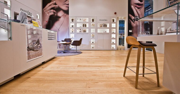 Oak Cornwall by Kährs European Naturals Collection, a 1-strip flooring with a matt lacquer finish, complements the modern design of the Pandora Store concept. Kährs Oak Cornwall is found in all Pandora stores across the UAE and GCC.