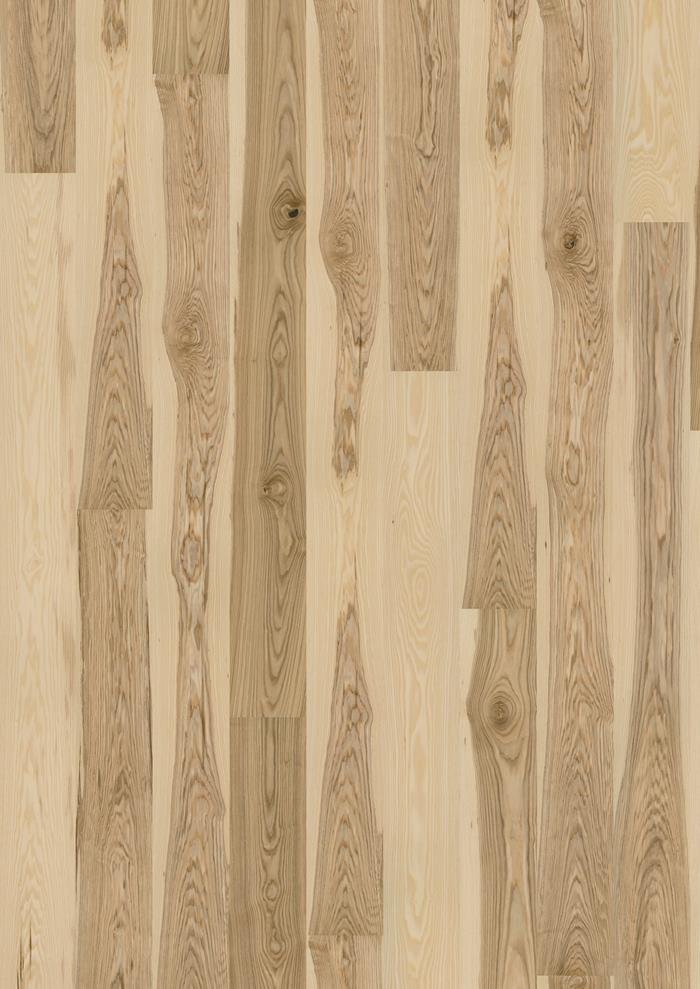 The sweeping patterns found in this single-strip ash floor from the Nordic Naturals Collection bring life to the timber for a lively design. To achieve this exclusive look, lighter surface wood has been mixed with darker core wood. The silk lacquer finish gives the floor a polished look and enhances the natural character of the wood.