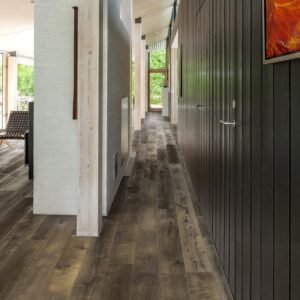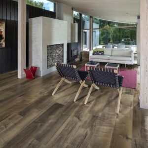 The natural oil finish and sepia grey stain found on this single-strip maple floor from the Artisan Collection create a luxuriously rustic expression. Each board is carefully brushed to bring out the character of the grain and highlight the natural texture of the wood. Four-sided bevelling at the edges ensures a classic full plank look and feel. Hand-scraping enhances the worn appearance of the floor.