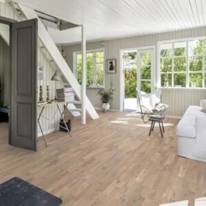 Oak Amalfi is a matt lacquered floor in a knotty grading with dynamic colour variations. The white stain gives the floor a soft, timeless impression.