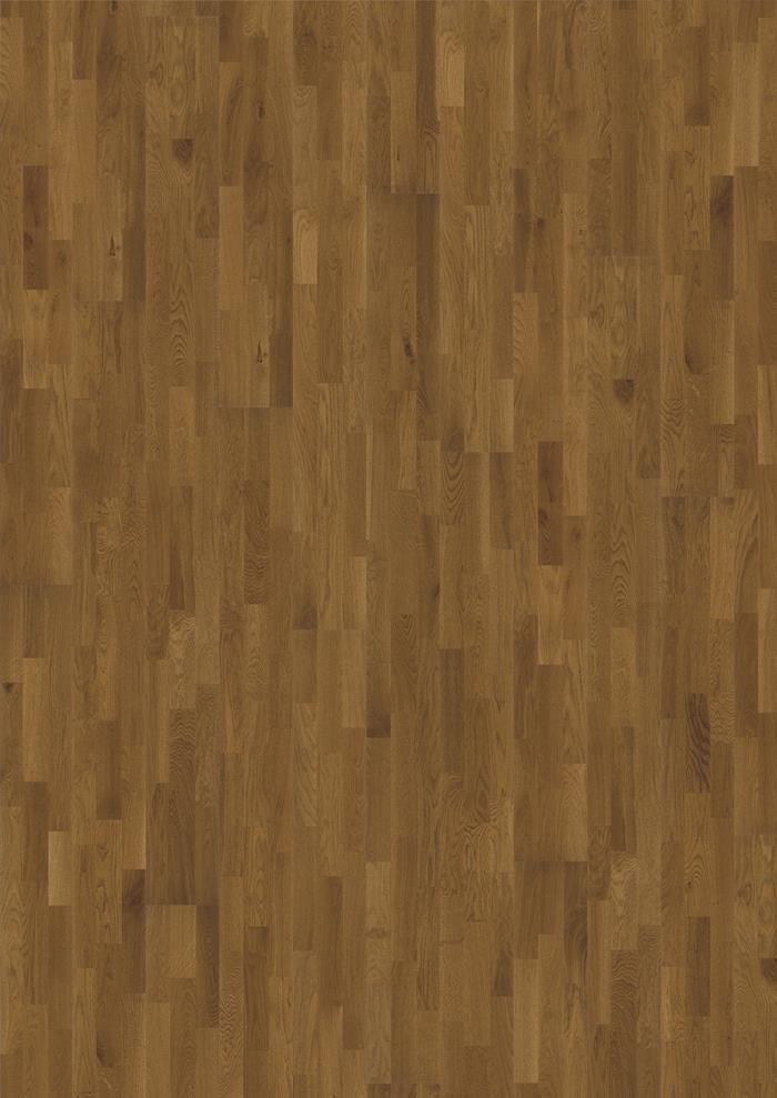 The chestnut-brown stain found in this 3-strip oak floor from the Tres Collection enhances the natural grain for a timeless expression. The silk lacquer finish gives the floor a polished appearance and brings out the character of the timber. The even finish protects the wood from daily wear, without adding artificial shine.