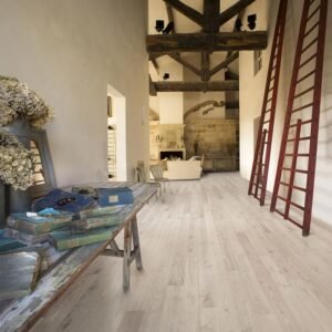The semi-transparent stain on this single-strip, white oak floor from the Element Collection allows the warmer hues to come through, giving the floor a light colour balance and a classically Nordic expression. Each board is carefully brushed to bring out the character of the grain and highlight the natural texture of the wood. Four-sided micro-bevelling at the edges ensures a traditional full plank look and feel. The matt lacquer finish eliminates glare while protecting the wood from daily wear.