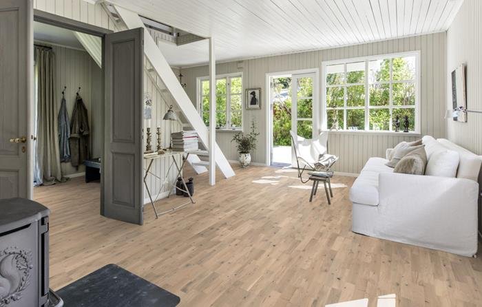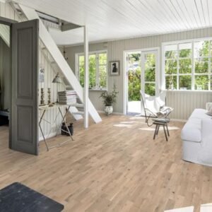 Oak Crystal introduces a look of fresh-cut oak, achieved by adding a tone of warmer white reminiscent of the colour of citrine crystal. It highlights the natural features of the oak, such as knots and contrasts in the wood created with the inclusion of heartwood. The matt lacquer finish eliminates glare while protecting the wood from daily wear.