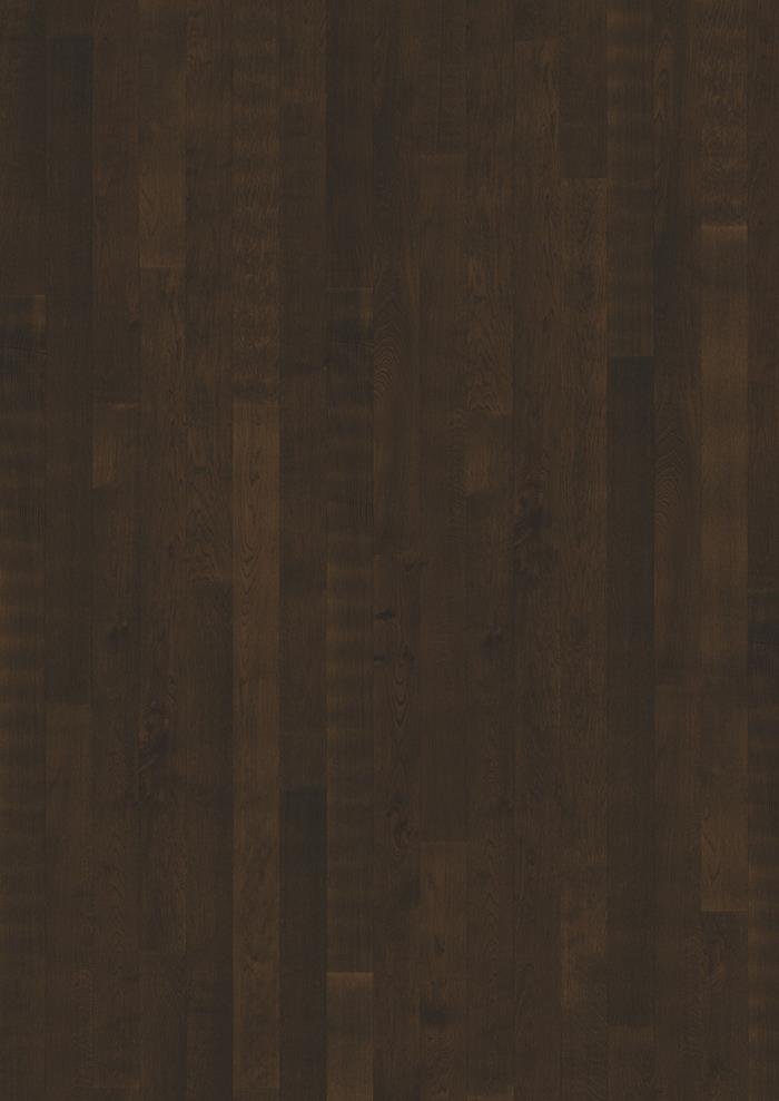 The charcoal-brown hues found in this single-strip oak floor from the Canvas Collection range from dark to light. Natural variations in the timber, alongside mottled knots and cracks, give it a rustic expression. Each board is carefully brushed to bring out the character of the grain and highlight the natural texture of the wood. The matt lacquer finish eliminates glare while protecting the wood from daily wear. Four-sided bevelling at the edges ensures a classic full plank look and feel.