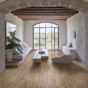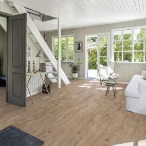 A stylish 3-strip floor, Oak Flint adds a modern and warm feel in any space due to it’s subdued, darker tone of natural oak. Just as flint has a wide spectra of shades and nuances in nature, the floor Oak Flint also demonstrates contrast while the warm grey stain softens and creates a unity in the design. The matt lacquer finish eliminates glare while protecting the wood from daily wear.