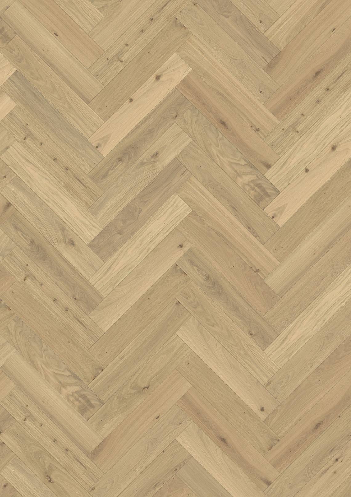 Oak Herringbone CD is a premium 2-layer parquet crafted from European oak, featuring colour variations and knots. Each bundle includes both left and right elements for glue-down herringbone installation. The generous dimension is highlighted by four-sided micro-bevelling, while the brushed and white oiled finish enhances the wood’s natural grain and texture.