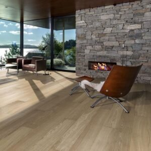 The blonde nuances in this exclusive, single-strip floor from the Capital Collection are balanced by an even colour variation between planks. Only the finest quality oak timber is used, and each board is carefully brushed to bring out the character of the grain and highlight the natural texture of the wood. Four-sided bevelling at the edges ensures a classic full plank look and feel.