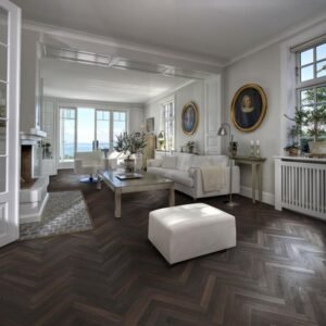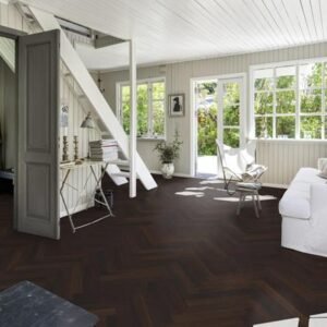Smoked Oak AB is a clean dark brown oak with some colour variation and small knots with an oiled finish. The product is delivered with both left and right version in the bundles for herringbone installation.