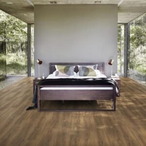Kährs Luxury Tiles Click floor Redwood has brown and rust red tones inspired by autumnal treetops. A timeless floor with a natural wood design, enhanced by features such as knots and cracks. The warm hues and gentle colours create a comforting atmosphere in any interior.