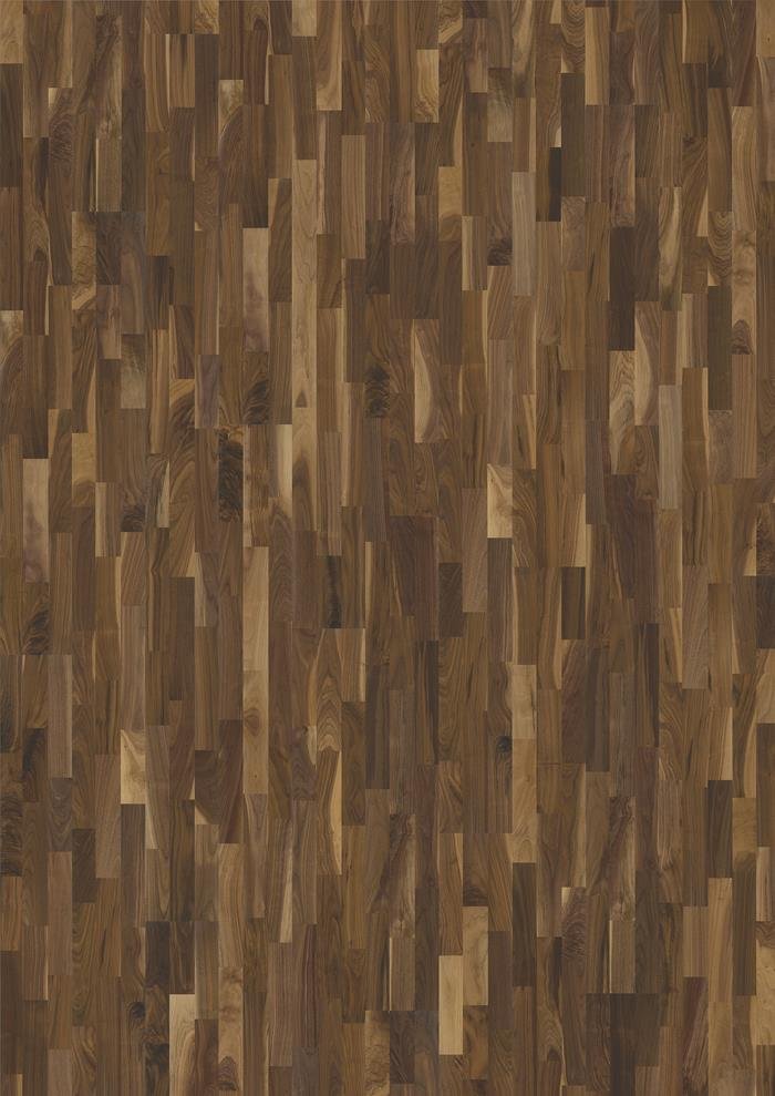 The colour variations found in this dark, 3-strip walnut floor from the American Naturals Collection range from blanched wheat to espresso brown. The silk lacquer finish gives the floor a polished appearance and brings out the natural character of the timber. The even finish protects the wood from daily wear, without adding artificial shine.