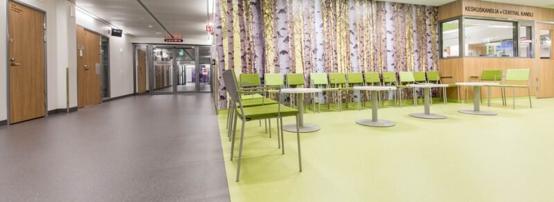 Upofloor Zero có khả năng kháng khuẩn và chống tĩnh điện, do đó là lựa chọn hoàn hảo cho môi trường bệnh viện khắt khe. Vi khuẩn không phát triển trên Enomer®, giúp việc giữ sàn sạch sẽ rất dễ dàng.