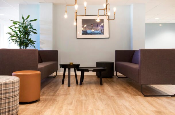 Khi cải tạo văn phòng, Ventad Ab đã chọn gạch ốp lát Luxury Tiles Cormorant để tạo cảm giác mộc mạc.