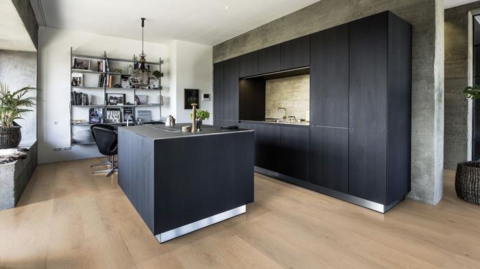 Sự kết hợp giữa tông màu be và các sắc thái tối tương phản tạo nên màu hổ phách dịu nhẹ. Màu sắc này, cùng với thiết kế gỗ tinh tế, tạo nên một sàn nhà ấm áp và thư thái.