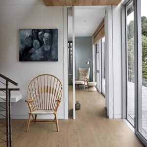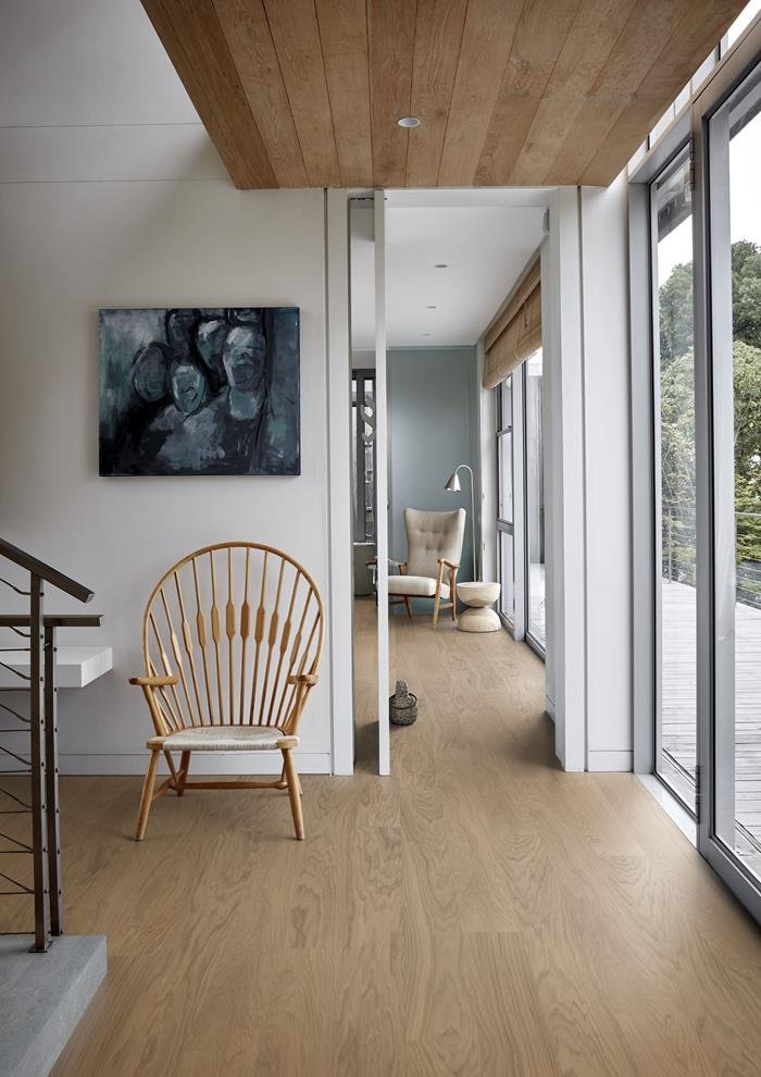 Tông màu ấm áp gợi nhớ đến đường nâu và bơ. Butterscotch wide là sàn gỗ sồi nhuộm một dải thuộc Bộ sưu tập Life. Một bộ sưu tập gỗ êm dịu với ít mắt gỗ và vẻ ngoài chân thực. Đường viền vát bốn cạnh tạo nên vẻ ngoài cổ điển nguyên tấm. Lớp sơn mài mờ sáng tạo giúp loại bỏ độ chói, đồng thời bảo vệ gỗ khỏi sự hao mòn hàng ngày.