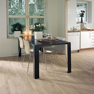 Những biến thể tự nhiên của gỗ được sử dụng trong sàn gỗ sồi 3 lớp thuộc Bộ sưu tập Sand được tôn lên nhờ lớp hoàn thiện màu trắng mềm mại, mang đến vẻ đẹp thanh lịch và nhẹ nhàng. Lớp sơn mài mờ giúp loại bỏ độ chói, đồng thời bảo vệ gỗ khỏi sự hao mòn hàng ngày.