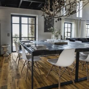 Sắc caramel cháy khét đặc trưng của sàn gỗ đơn tấm thuộc Bộ sưu tập Da Capo này càng thêm nổi bật nhờ hiệu ứng khói đậm đà trên các tấm ván, tạo nên bảng màu sang trọng. Những mắt gỗ và vết nứt điểm xuyết trên các tấm ván, tạo nên hiệu ứng cổ điển tuyệt đẹp gợi nhớ đến gỗ tái chế. Các mối ghép vuông vức trang trí càng làm tăng thêm vẻ ngoài tinh xảo. Mỗi tấm ván được Đánh bóng kỹ lưỡng để làm nổi bật vân gỗ và kết cấu tự nhiên của gỗ. Kỹ thuật vát bốn cạnh đảm bảo vẻ ngoài cổ điển, nguyên khối của ván sàn. Mỗi tấm ván đều được mài thủ công tỉ mỉ, làm nổi bật vẻ ngoài cũ kỹ của sàn gỗ.